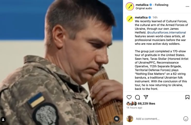 Metallica endorses Ukrainian musician-turned-solder’s performance of their ‘Nothing Else Matters’ song...