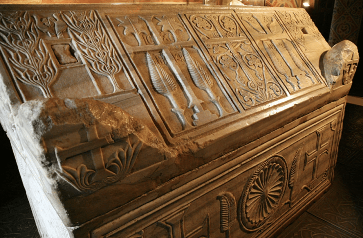 Marble sarcophagus of King of Kyiv Rus Yaroslav the Wise and his wife Queen...