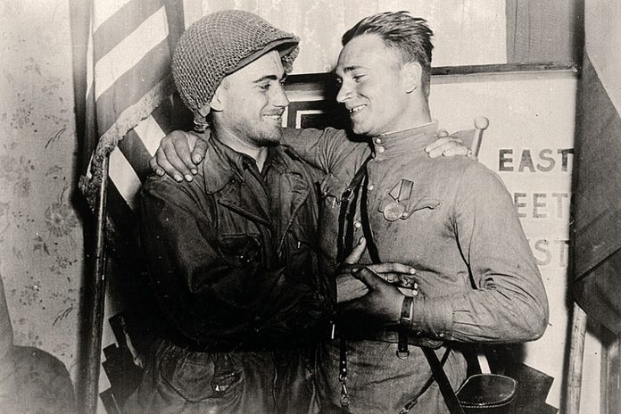 April 25, 1945, the day American troops and the troops of the First Ukrainian Front met at the Elbe River, near Torgau in Germany is known as the Elbe Day. The most iconic photo of that grand event portrays American 2nd Lt. William Robertson and Ukrainian Lt. Olexander Silvashko. O. Silvashko was born in the Cherkasy oblast of Ukraine and went to the front from there. He was wounded three times and once suffered a concussion. After the Elbe, he fought in Dresden and Prague. When he returned to Ukraine after the war, he discovered that there was no food there. Silvashko had to travel to Belarus to exchange some of his possessions for food and stayed there. He worked as a school teacher even after reaching his retirement age.