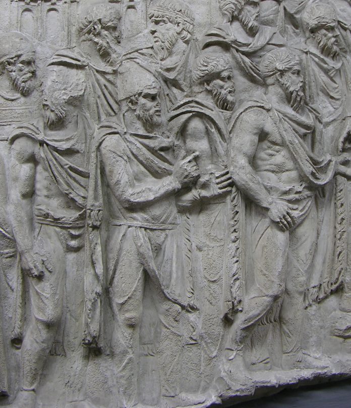 On the famous monument of the Dacian War, Trajan’s Column, we see horsemen covered in precisely this type of scale armor. These horsemen are not Dacians, but their allies, the Sarmatians.