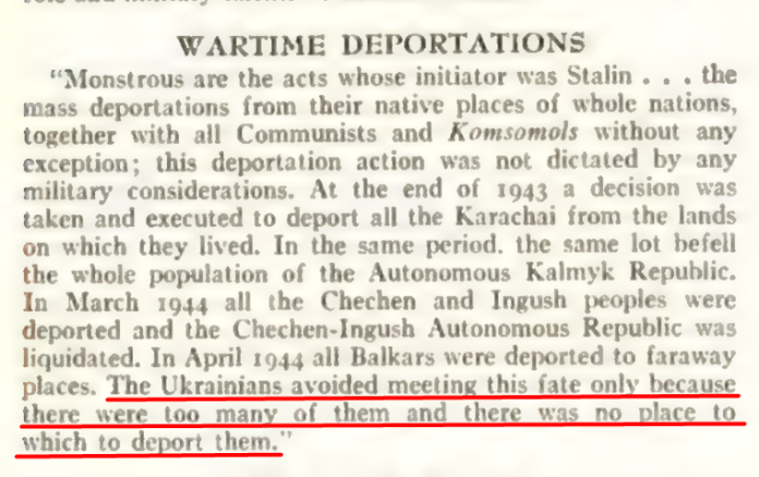 Surprisingly, neither Wikipedia nor the Encyclopedia of Brittanica mention the part of that Speech where Khrushchev condemned Stalin’s deportations of whole nations.