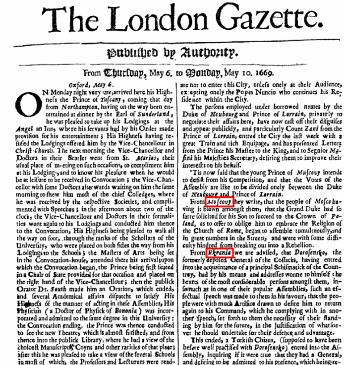 Those 17th-century Englishmen were strange – they didn’t know that Lenin would “invent Ukraine” only 250 years later (according to some Moscow ruler of the 21st century).
